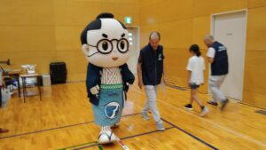 当日は、藍住町町民体育館の一角に屋内ブースを設けて、歩測達人(歩測で距離を当てるゲーム)やUAVシミュレーション体験、UAVの展示を行いました。