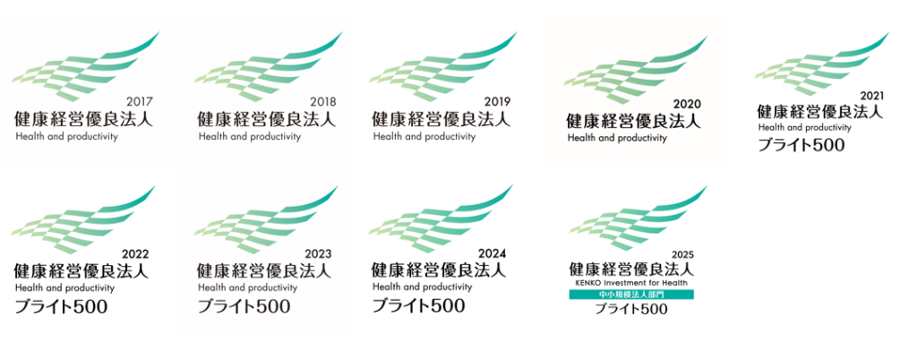 当社は2017年に「中小規模法人部門」において全国で95社(その後223社が追加認定)、四国内では2社のうちに選ばれ、その後も10年連続して認定されました。2021年度からその中でも特に優良な上位500法人に対して、新たに(ブライト500)という冠が付加されることになり、当社は中小規模法人部門に認定された23,085社の内、6年連続で(ブライト500)に選定されました。